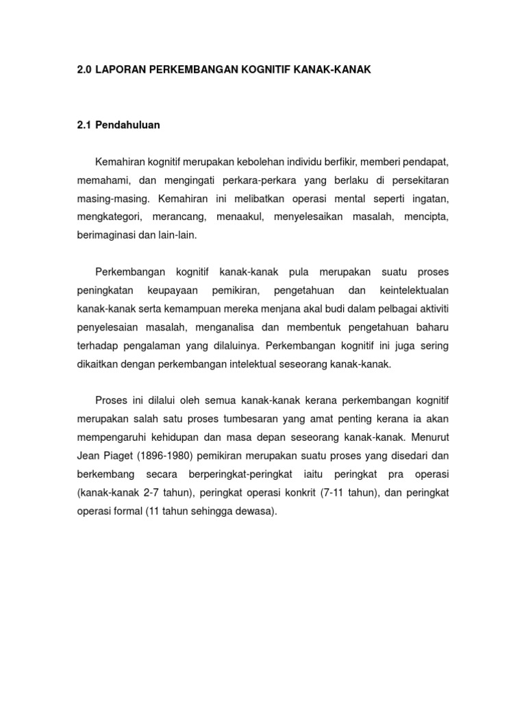 Laporan Perkembangan Kognitif Kanak Kanak Pdf