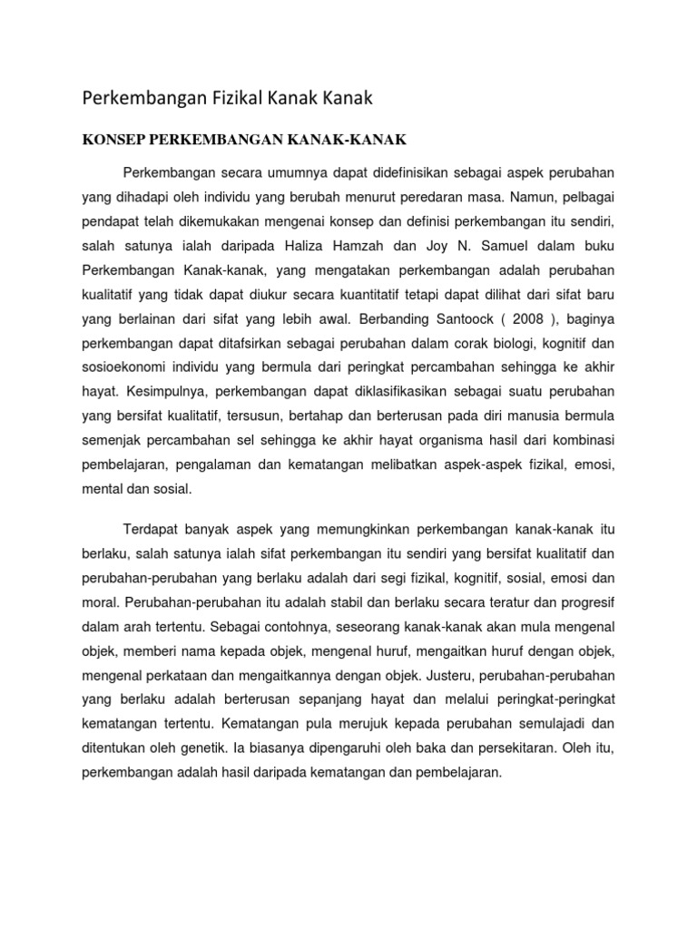 Ada masa percepatan dan perlambatan. Ibu baopa atau oaring dewasa haruslah memainkan peranan yang penting dalam memenuhi keperluan kanak-kanak seperti keperluan asas kasih sayang kebajikan dan memberi kata semangat atau. View Kesimpulan Perkembangan Fizikalpptx from MPU 3022 at IPG Kampus Bahasa Melayu.